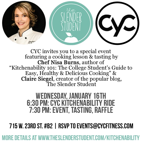 2013 is going to be a great year for Kitchenability. There are so many exciting things on the horizon. Earlier this week, I posted about my upcoming trip to Austin, TX. Since then, another great Austin-area event has been added to the schedule. Kitchenability will be teaming up with Claire Siegel of the popular blog The Slender Student for an event at CYC Fitness. Burn […]