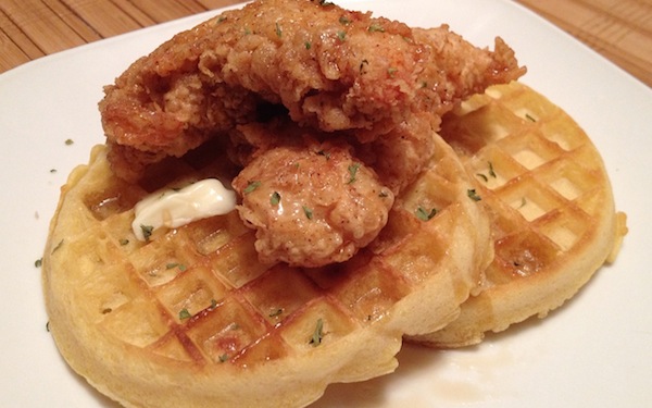 Chicken and waffles is a classic comfort food combo. You’ll love this easy-to-follow recipe that’s filled with shortcuts, like using frozen waffles! Really, you just need to focus on whipping up some delicious, fried and flavorful chicken tenders, by following my instructions below. Then, quickly toast up some frozen waffles, place your fried chicken on top, add butter and syrup, and you’re ready to eat!