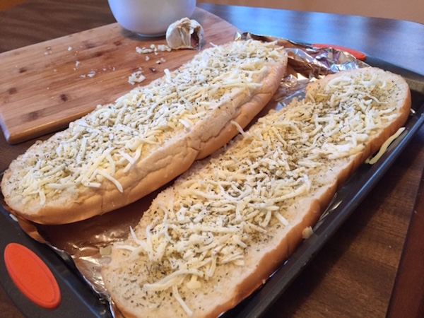 It’s pasta night in the Cochran house! I am whipping up some tasty homemade pasta sauce, following the same recipe in Kitchenability 101 that I use for making homemade pizza sauce (I just added an extra can of crushed tomatoes and a splash of wine). And, what goes better with pasta than garlic bread? Especially this homemade cheesy garlic bread recipe!!! Yummy!!!