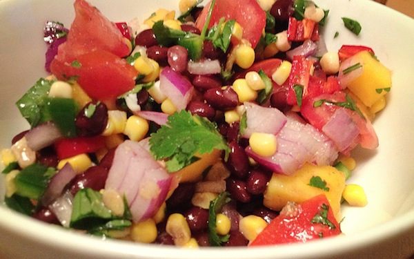 Since May is National Salsa Month, my fiance and I decided to play around in the kitchen and concoct what turned out to be an oh-so-simple and oh-so-good salsa recipe, featuring mango, black beans, tomatoes, corn, jalapeños and more. Grab some tortilla chips and some friends and dig in!